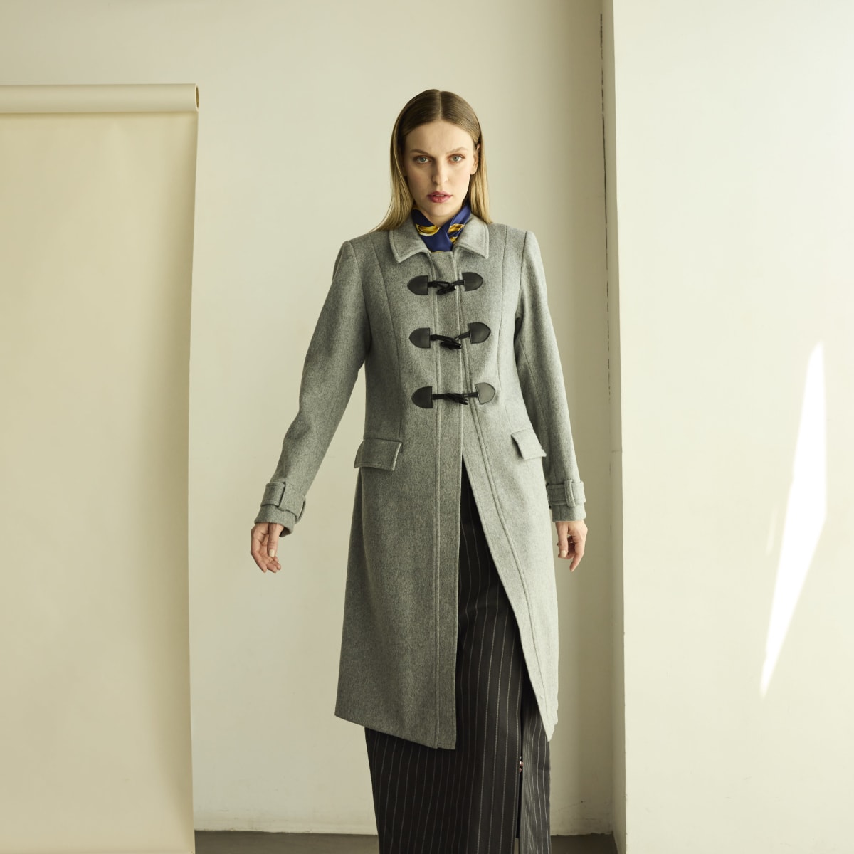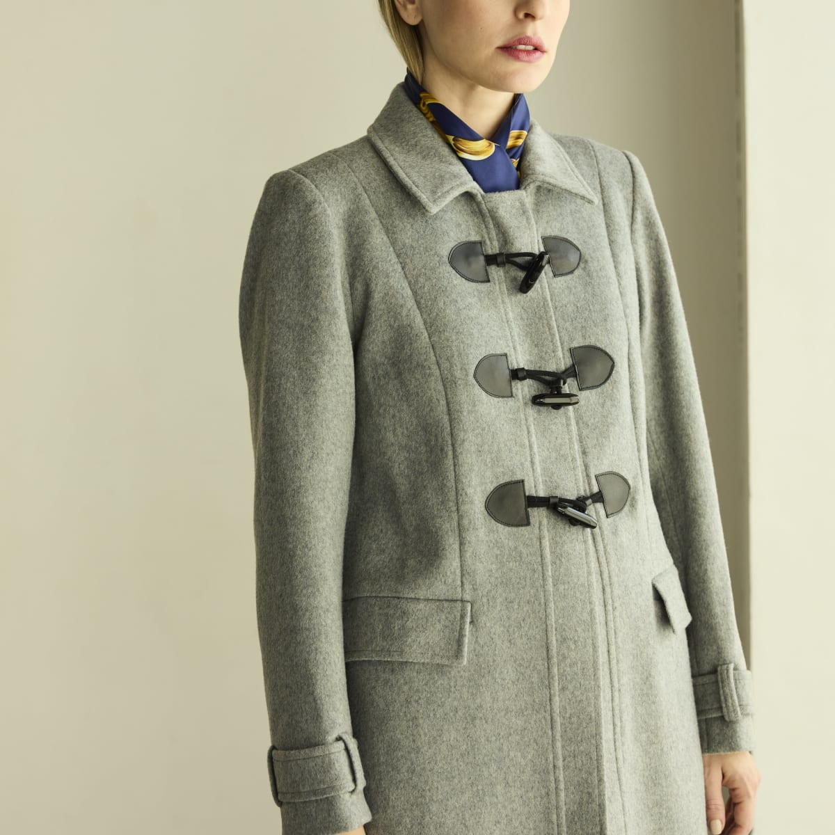 Tapado largo. Bolsillos con tapa (acceso superior). Presillas en manga con broches. Martingala con broches. Prenda forrada. Bordado interno.