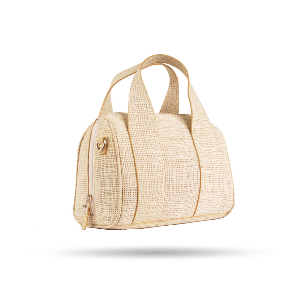 Cartera tipo Baúl compacto y de gran capacidad. Forro de algodón rayado y compartimento con cierre.