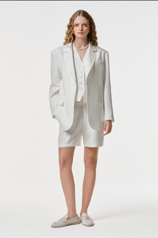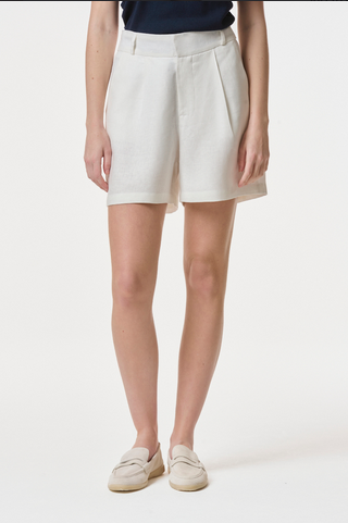 Bermuda sastrero confeccionada en 100% Lino. Silueta cómoda con cierre frontal y broches pantaloneros. Posee cintura alta de 5 cm con bolsillos laterales reales y bolsillos ojal traseros.