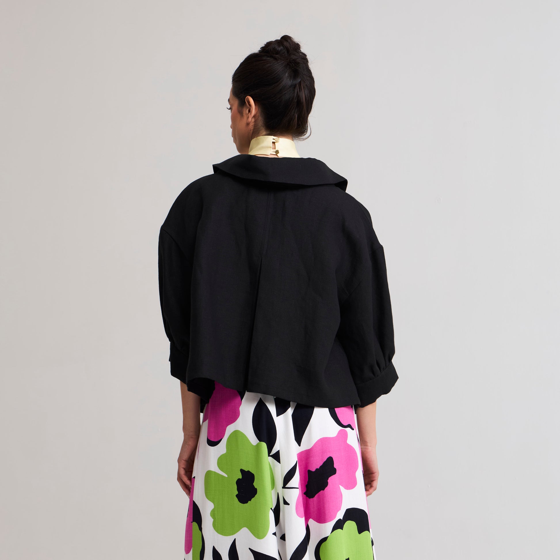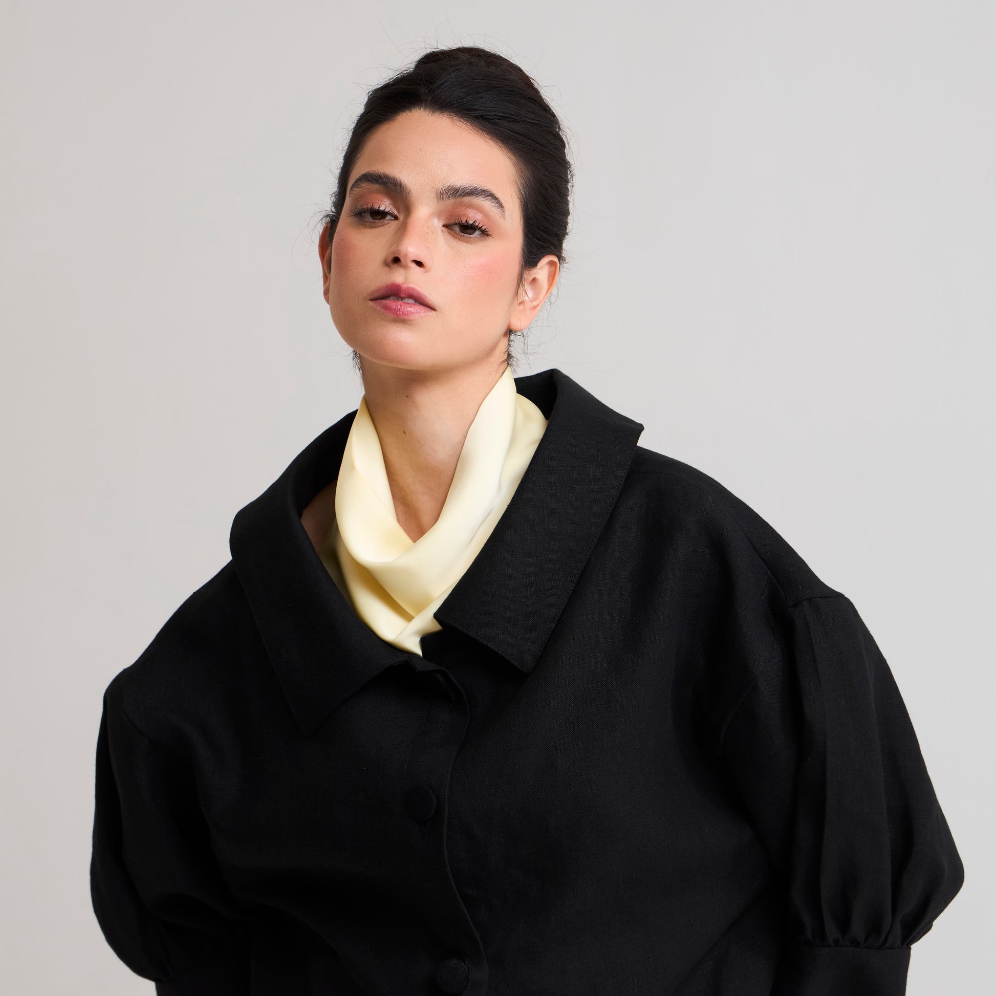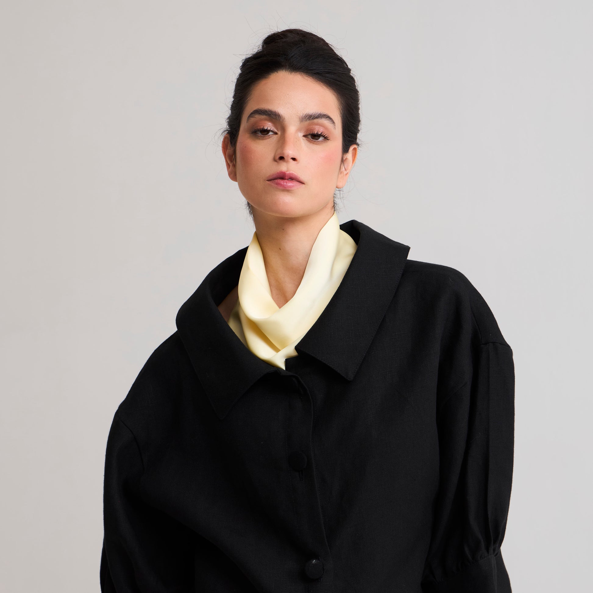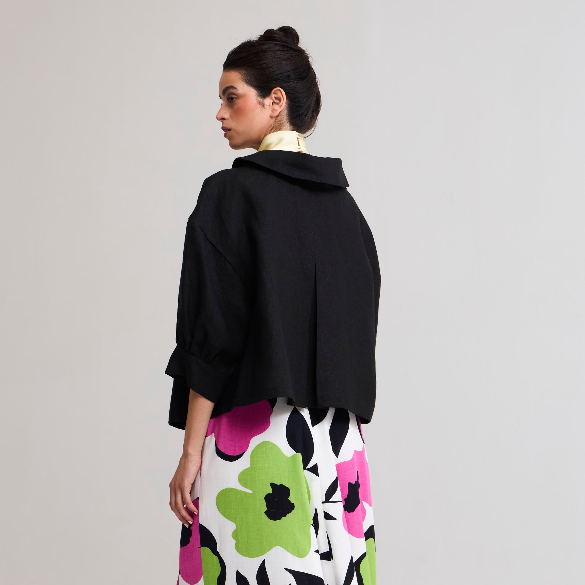 "Diseño calce amplio, una mezcla de estilos retro y contemporáneos, cuello Peter Pan amplio, botones forrados, manga caída, largo al codo y recogida en puños de 3 cm, tablón trasero. Un diseño cómodo para usar sobre otras prendas como chaqueta ligera o solo como camisa corta. La posibilidad múltiples usos para diversas ocasiones son valores distintivos del diseño de La Margot. Las puedes pedir en otros colores y personalizados. 100% lino fabricado en Chile"