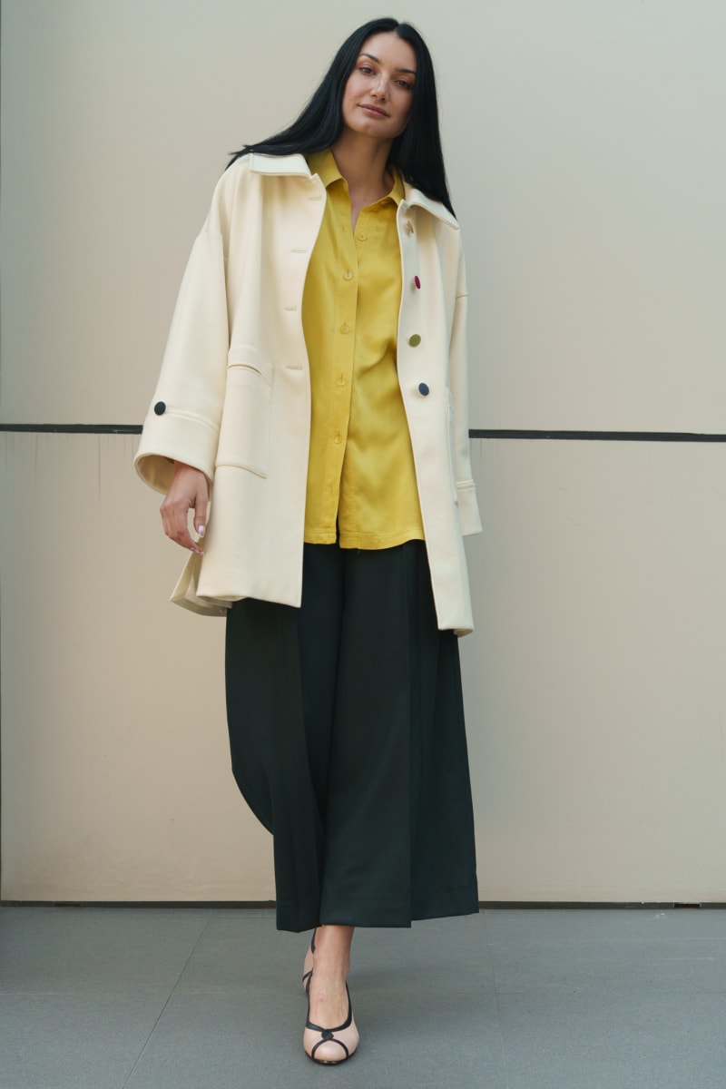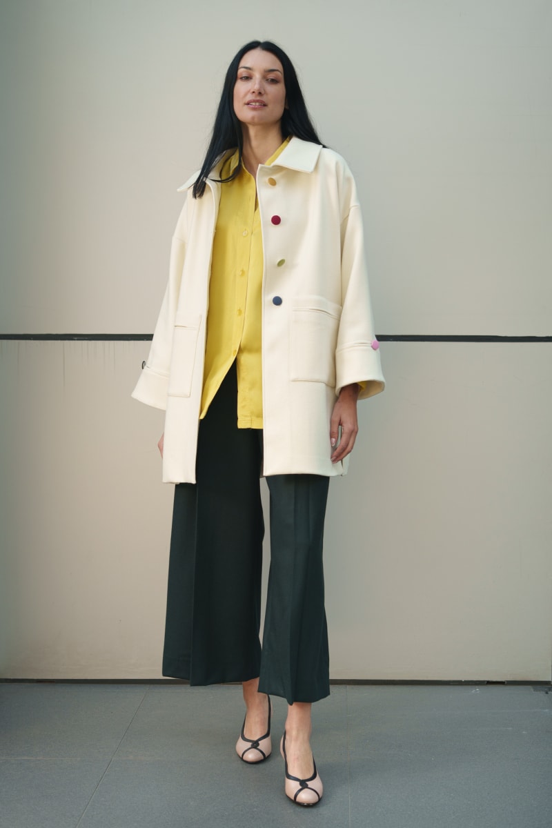 Diseño overzise, cuello de boca ancha, mangas anchas de largo 3/4.