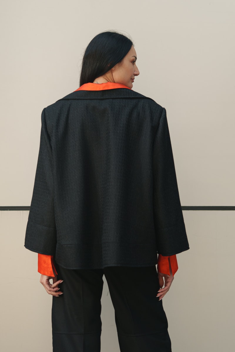 Confeccionado en telas de fabricación nacional: paño 100% lana de Bellavista Tomé, forrada en rayón/viscosa de Strobel Linnings.