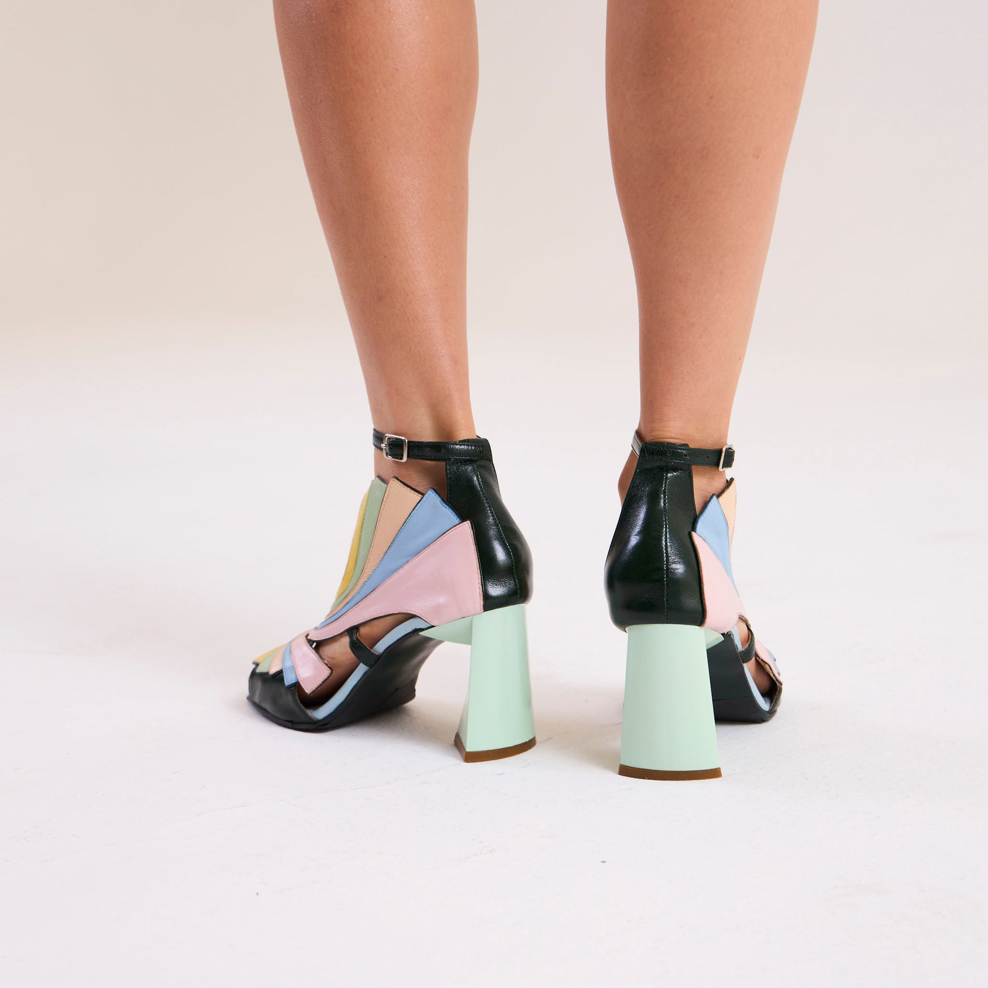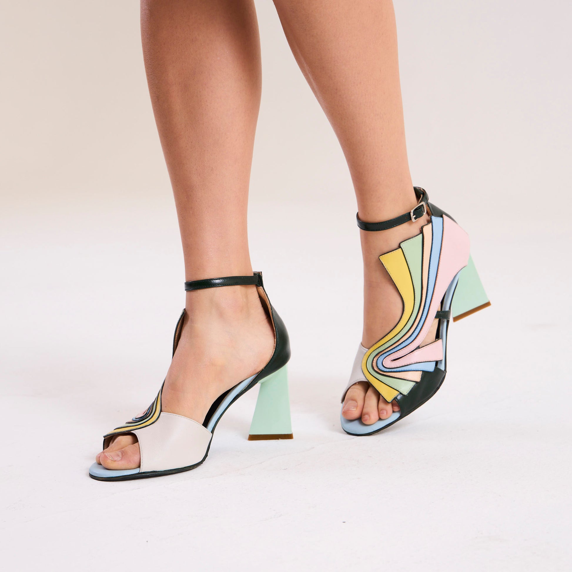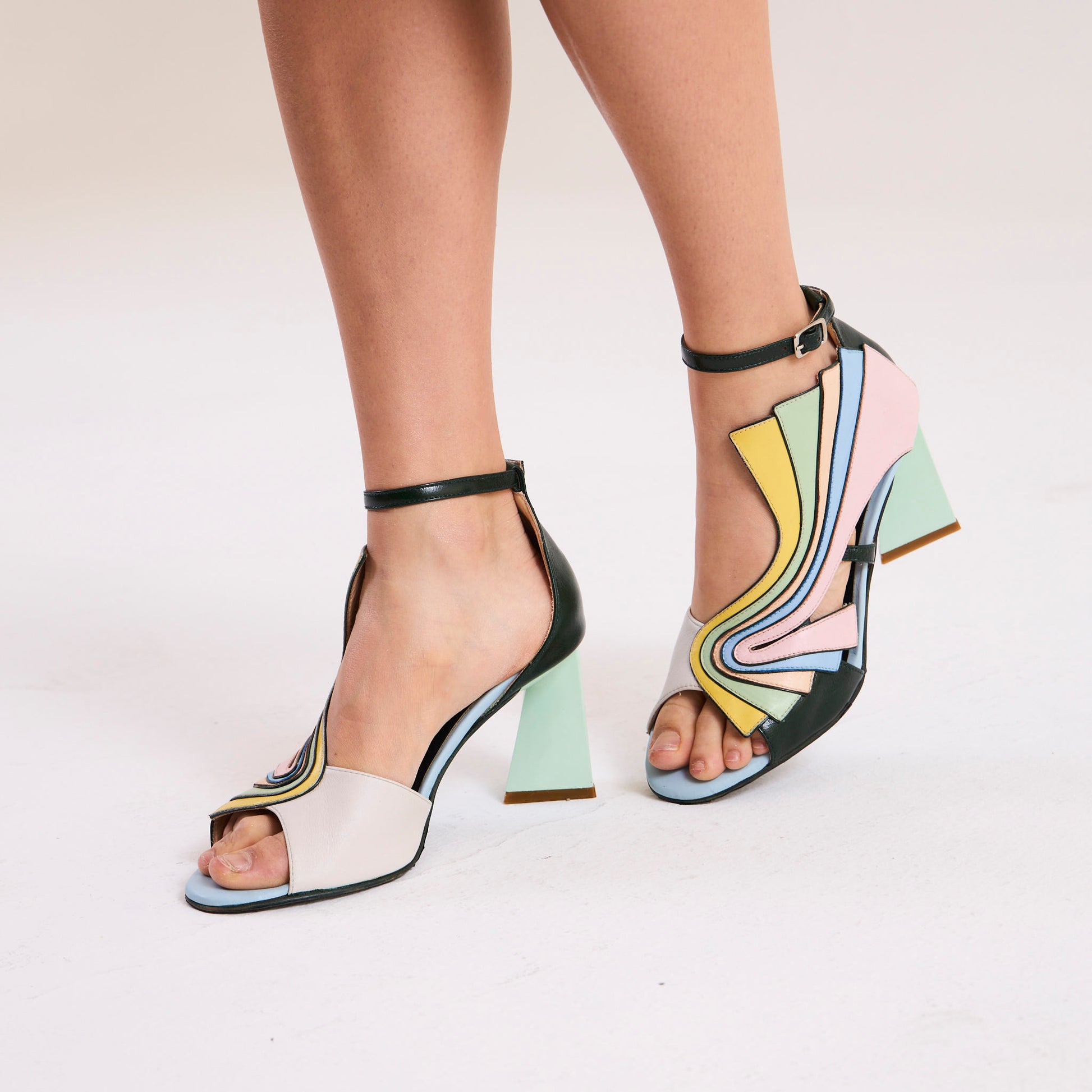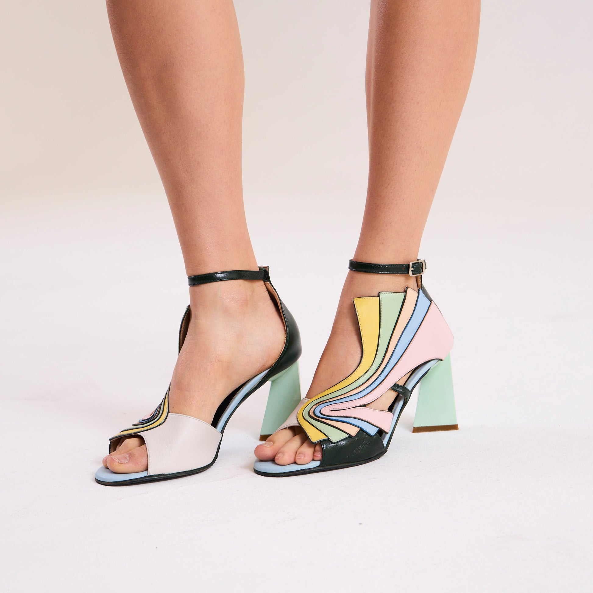 El Zapato Germinare es el que dio origen a esta colección es una expresión pura de diseño que destaca por sus trabajados detalles sobre el costado y su taco pintado a mano de 6, 5 cm utilizando la técnica ombré. Esta disponible en dos versiones: negro y pastel.