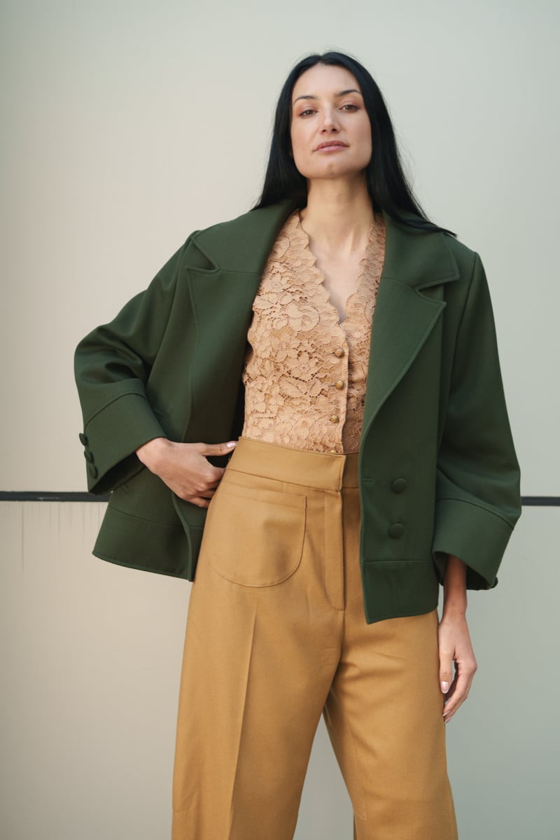Confeccionado en telas de fabricación nacional: paño 100% lana.